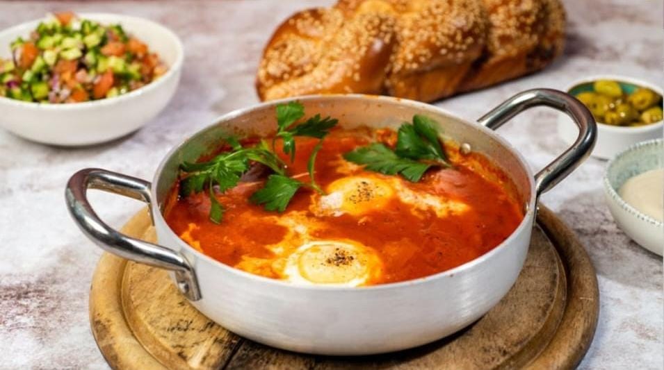 يقدم يخنة الطماطم الحارة، الفلفل الأحمر، البصل والثومفي مقلاة ساخنة مع مكعبات التوفو والأصفر النباتي،يقدم مع سلطة شخصية، حلة حلوة، طحينة وزيتون منزلي.يتم تقديم الأطباق في فئة "الصباح" (ما عدا الشكشوكة والمويسلي) مع مشروب من اختيارك المشروبات الساخنة: اسبريسو / ماكياتو / كابتشينو / أمريكانو / قهوة نيس على الحليب / قهوة سوداء / شوكولاتة / شاي / قهوة باردة. المشروبات الغازية: البرتقال / عصير الليمون / الجزر / الجزر / الجريب فروت الأحمر / الصودا / المياه المعدنية.زيادة المشروب برسوم إضافية | مشروب غازي في زجاجة مقابل رسوم إضافية | القهوة المثلجة / عصير الليمون المطحون مقابل تكلفة إضافية.