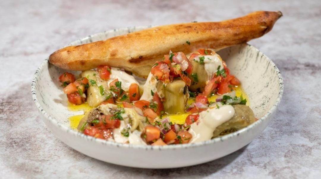 باذنجان مشوي, طحينه, صلصة البندورة, تتبيلة