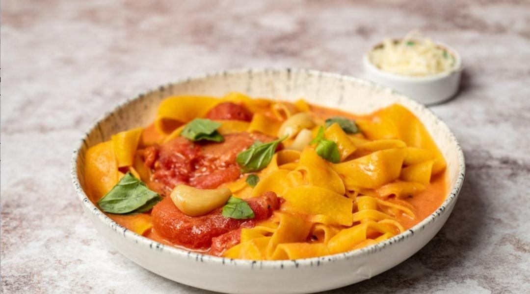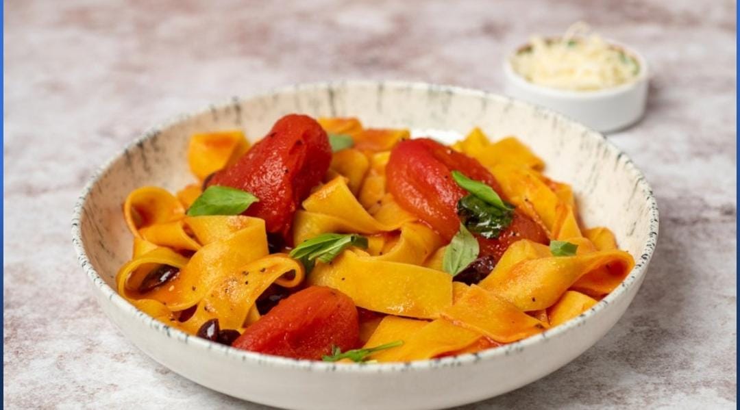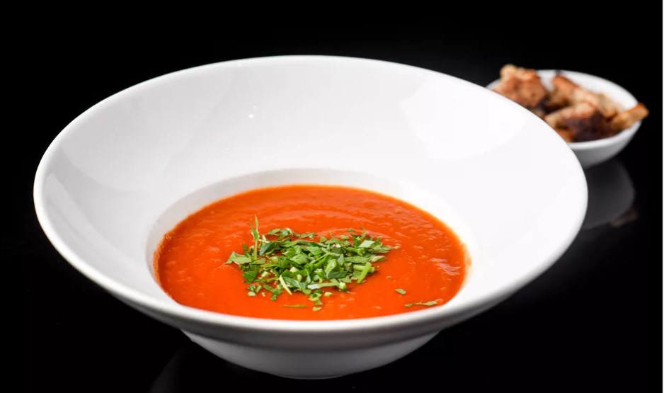 يقدم يخنة الطماطم الحارة، الفلفل الأحمر، البصل والثوم