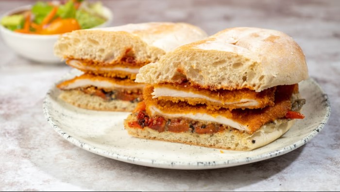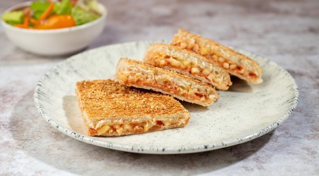 تقدم السندويشات مع حلاوة الحلة / الخبز الأبيض / خبز الحبوب ومع إضافة سلطة شخصية من اختيارك من الأوراق/المقطعة.
