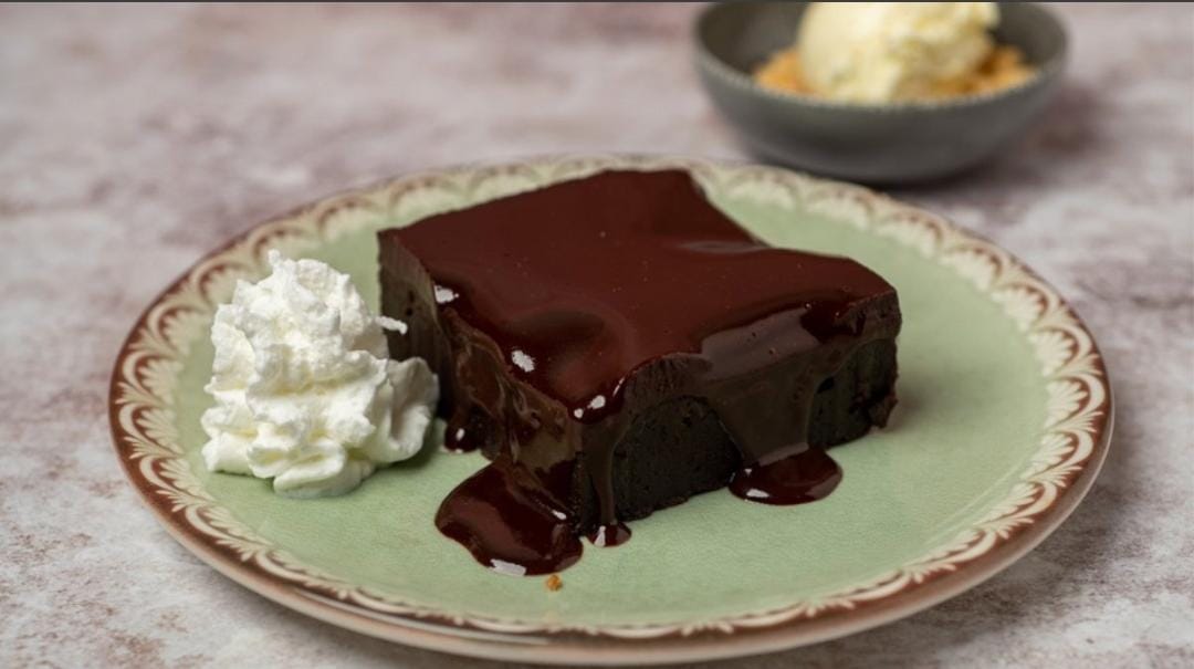كعكة الشوكولاتة الدافئة التي تذوب في فمك، آيس كريم الفانيليا والكريمة المخفوقة (بدون دقيق).