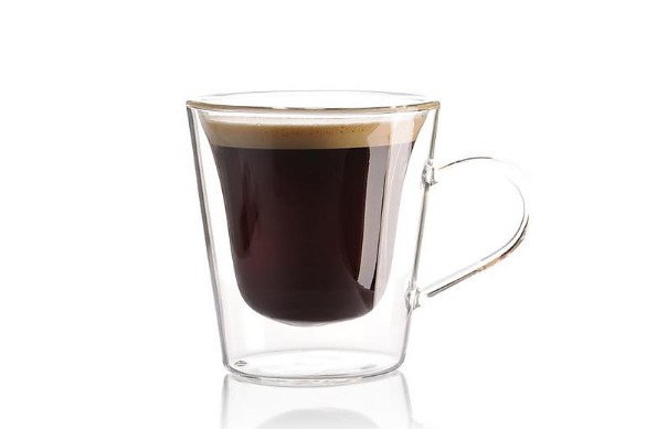 حليب بارد على قاعدة إسبريسو مزدوجة مع مكعبات ثلج.